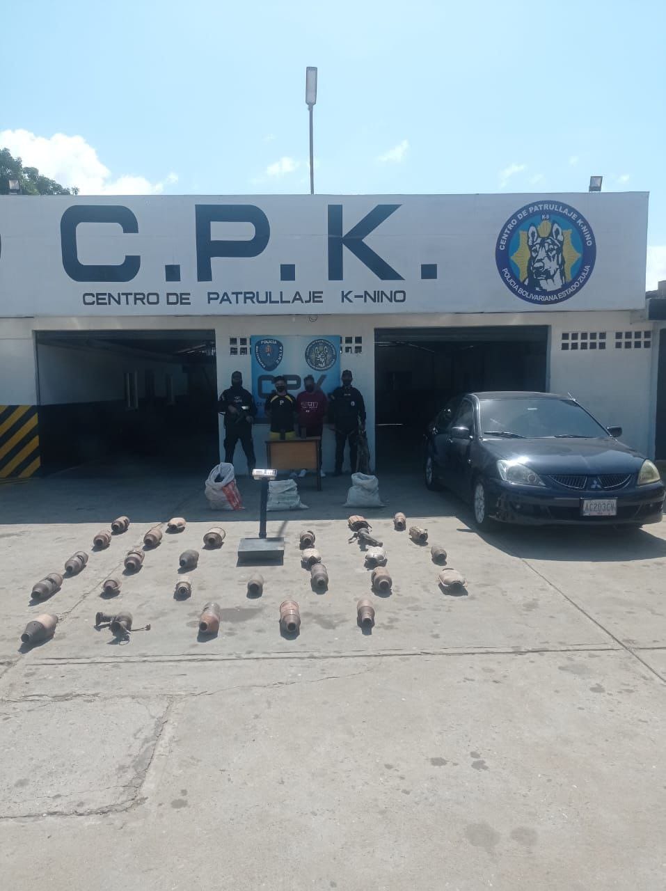 Los hombres, en sacos de fique bajaban el material de un vehículo Mitsubishi, color azul, años 2005, placas AC203CV, al ser abordados por los uniformados entraron en una crisis nerviosa y no pudieron demostrar el origen ni el fin del material; se les incautó 32 catalizadores para vehículos, una báscula digital, dos sacos con los elementos químicos Platino, Paladio, Radio, con un peso de 17 kilos.