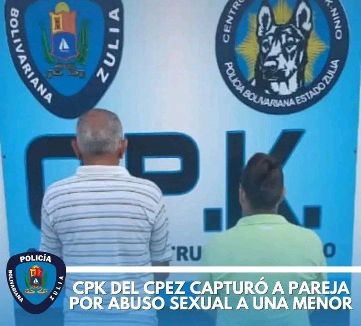 Una mujer junto a su pareja sentimental fueron detenidos señalados por el presunto abuso sexual de una adolescente de 15 años de edad -hija de la implicada-; según información compartida por el director general del Cuerpo de Policía del estado Zulia (Cpez) CJ Roberto Antonio Alfaro Molinares la denuncia fue interpuesta por el progenitor de la menor.