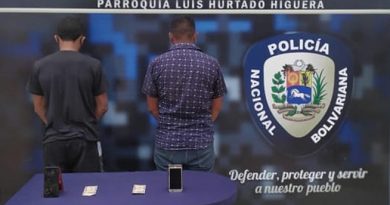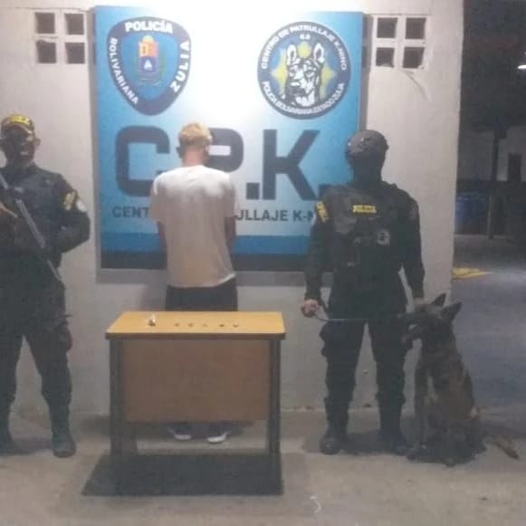 En Maracaibo frente al centro comercial San Felipe, sabuesos del Centro de Patrullaje K-nino CPK, capturaron a Moisés Segundo Marín Marín de 26 años de edad, quien tenía en su poder seis envoltorios con restos vegetales de presunta marihuana de 14 gramos de peso. También en el centro de Maracaibo efectivos del Centro de Coordinación Policial Maracaibo Este, apresaron a Raúl David Peña de 41 años y Tairo Rafael González Simmonds de 25 años con presunta marihuana.