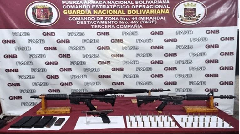 En el lugar los militares incautaron dos fusiles calibre 5,56 mm, modelo AR-15, un rifle .30 modelo 30-30, una pistola Browning 9 mm, así como cuarenta y seis cartuchos.