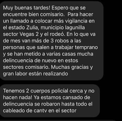 En este caso; dimos respuesta efectiva a una denuncia recibida en la red social Instagram del comisario general Douglas Rico, @Douglasricovzla, Director Nacional de la Policía Científica, donde manifiestan que, en los sectores 2 y El Rodeo del municipio Lagunillas, están siendo azotados por delincuentes que se dedican al robo a mano armada y en viviendas.