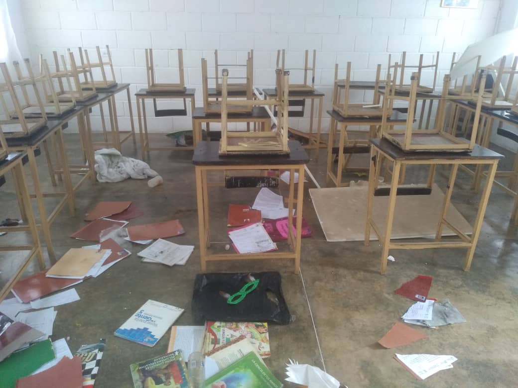 Así mismo, Freddey Pérez, luchador social, informó a este medio de comunicación, que los sujetos desconocidos penetraron las áreas internas y salones de clases del recinto educativo, causando destrozos en carteleras, pupitres, oficina administrativa y otros espacios.