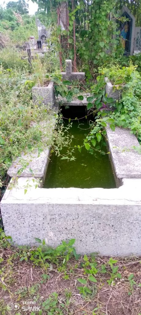 Durante el recorrido por las instalaciones del cementerio de Nueva Bolivia, se pudo observar las condiciones en la que se encuentra el lugar, algunas tumbas están ya sepultadas bajo maleza, las lápidas y tumbas llenas de agua pluviales luego de ser profanadas por los antisociales, lo que además puede generar gran contaminación para quiénes visitan el cementerio con frecuencia para recordar a sus seres fallecidos.