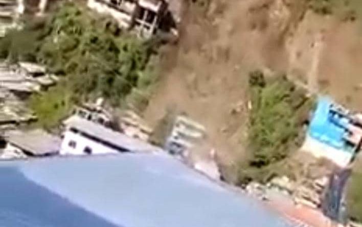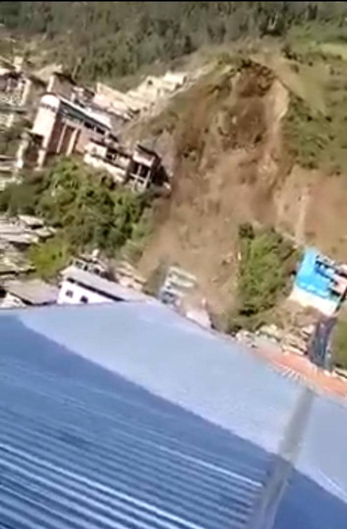 En la filmación, que fue difundida a través de las redes sociales, se escucha a los testigos gritar desesperadamente mientras los restos el acantilado que se encontraba detrás del pueblo se caen rápidamente sobre los hogares.