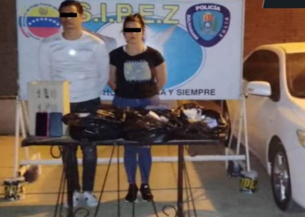 La pareja fue detenida al hacer una maniobra sospechosa del carro en el cual se movilizaban y que faltó poco para generar una colisión con la patrulla en la que iban funcionarios, que realizaban una investigación de campo por la avenida 100 Sabaneta de Maracaibo.