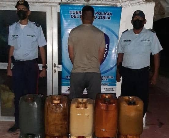 En horas de la noche de este sábado una comisión del Centro de Coordinación Policial Eje Mara-Padilla, logró la captura de Simón José Salas de 39 años de edad, quien presuntamente comercializaba en el mercado negro combustible Diesel, el hecho se registró en el sector Félix Loreto de El Moján, municipio Mara.