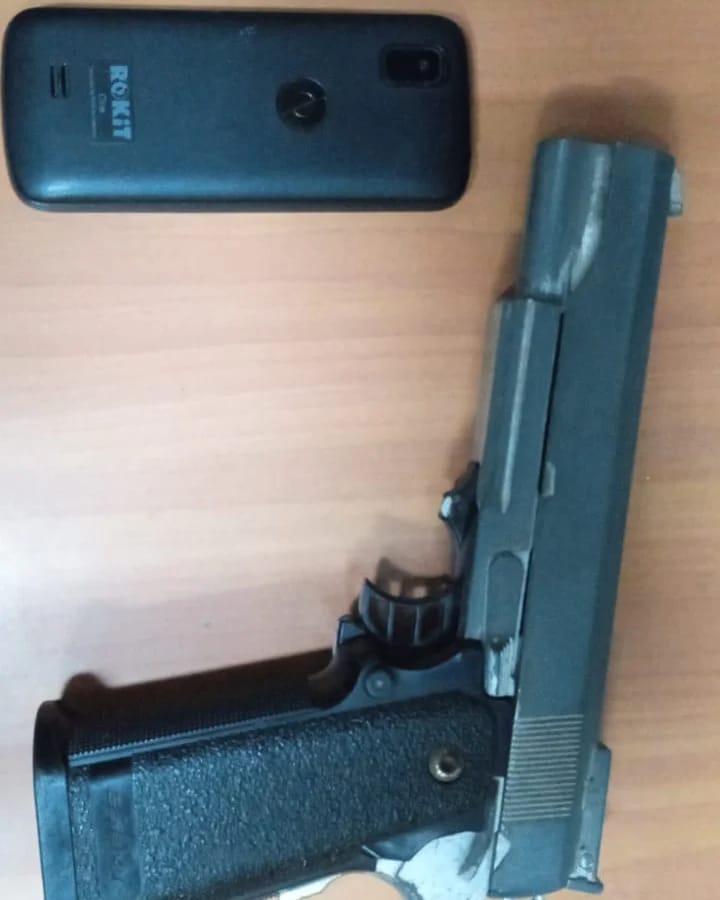 Los funcionarios procedieron a hacerle una inspección corporal, dando como resultado la incautación de un facsímil Piettro Beretta y un teléfono celular, perteneciente a la víctima.