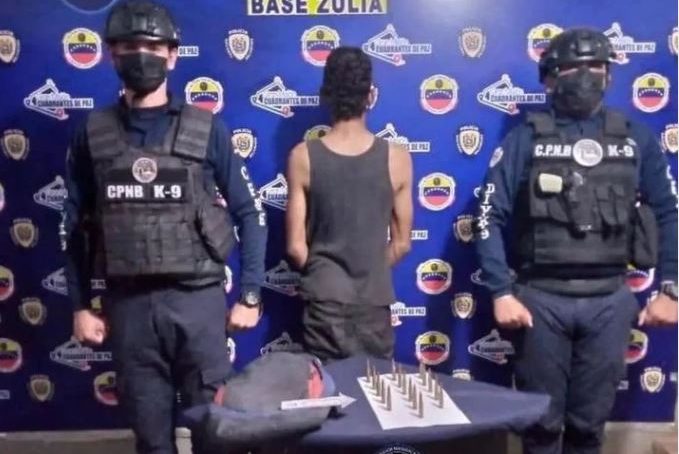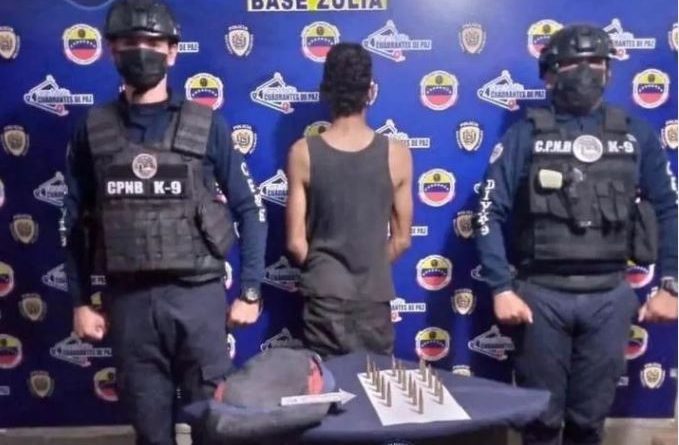 La aprehensión la hicieron funcionarios adscritos a la División Canina de la base estadal Zulia por la posesión de municiones calibre 7,62 x 51 mm y a su vez se encontraba solicitado por el delito de posesión ilícita de sustancias estupefacientes y psicotrópicas.