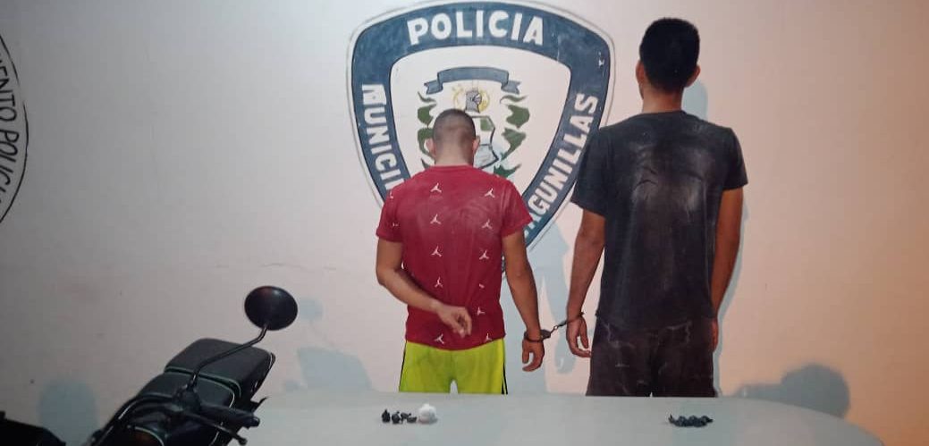 Durante labores de patrullaje, dos hombres fueron detenidos por presunto tráfico de droga en el municipio Lagunillas de la Costa Oriental del Lago, informó el director general de PoliLagunillas, C/J. MSc. Rigmar Borjas Contreras.