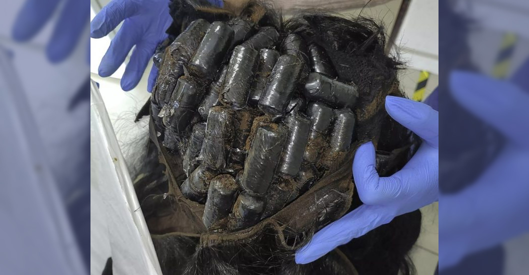 Tras hacerle una prueba de escáner, los agentes pudieron observar que entre las trenzas de su pelo natural y una peluca que llevaba puesta escondía comprimidos de droga adheridos a su cabeza.