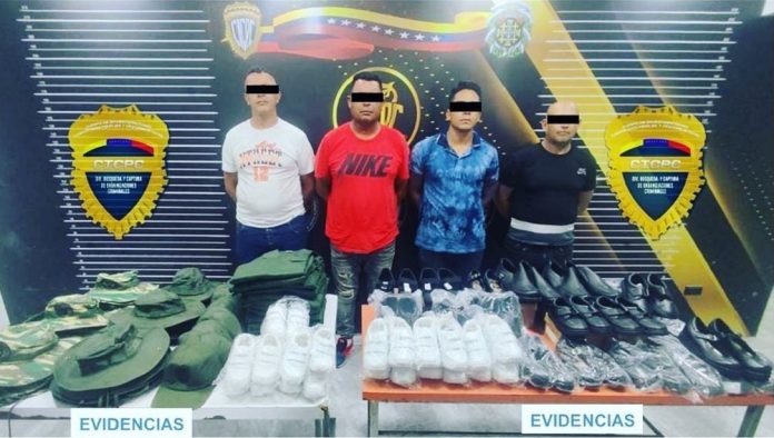 En el lugar, encontraron en poder de los cuatro hombres múltiples prendas militares y 5.000 pares de zapatos de varios tipos, tallas y modelos, los cuales eran fabricados por el Estado venezolano.