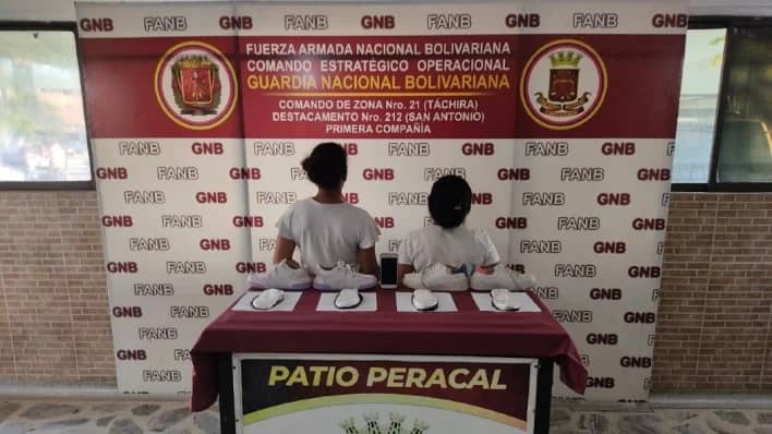 Una mujer y su hija resultaron detenidas por funcionarios de la Guardia Nacional Bolivariana (GNB) por traficar más de un kilogramo de cocaína. El procedimiento se llevó a cabo en San Antonio del Táchira y, de acuerdo a las autoridades, provenían de Colombia con destino hacia Carabobo.