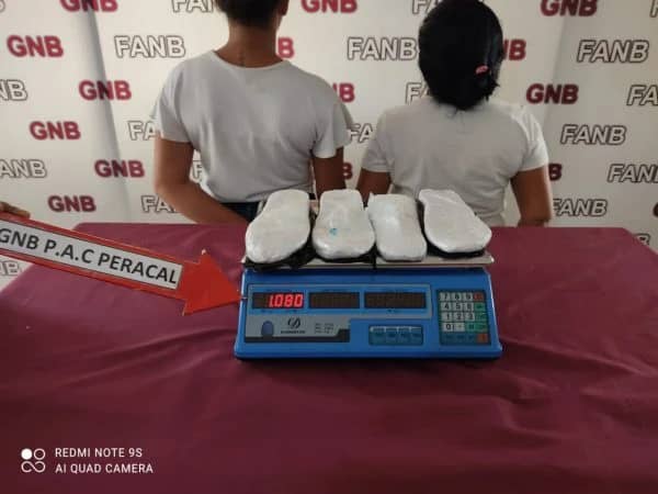 Los funcionarios de la GNB precisaron que los envoltorios de cocaína tenían un peso de 1,080 kilogramos. En consecuencia, fueron detenidas y puestas a la orden de la Fiscalía Vigésimo Primero de Control del Ministerio Público (MP).