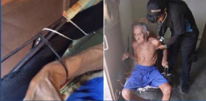 Detienen a mujer por mantener amarrado a su abuelo y pasando hambre