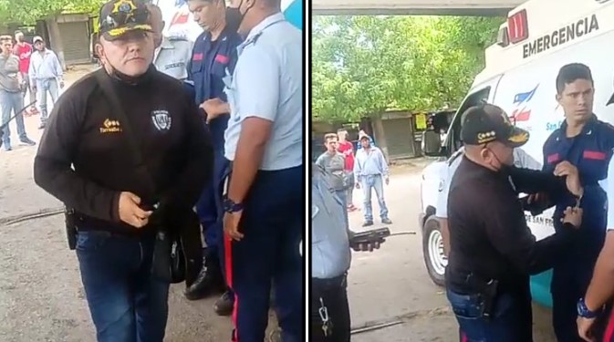 En el video se deja “entrever” en el audio que aparentemente el chofer de la ambulancia no quiso prestar el apoyo para el traslado al funcionario. Ante eso, de acuerdo con lo difundido en el video, el policía le colocó las esposas al uniformado bomberil.