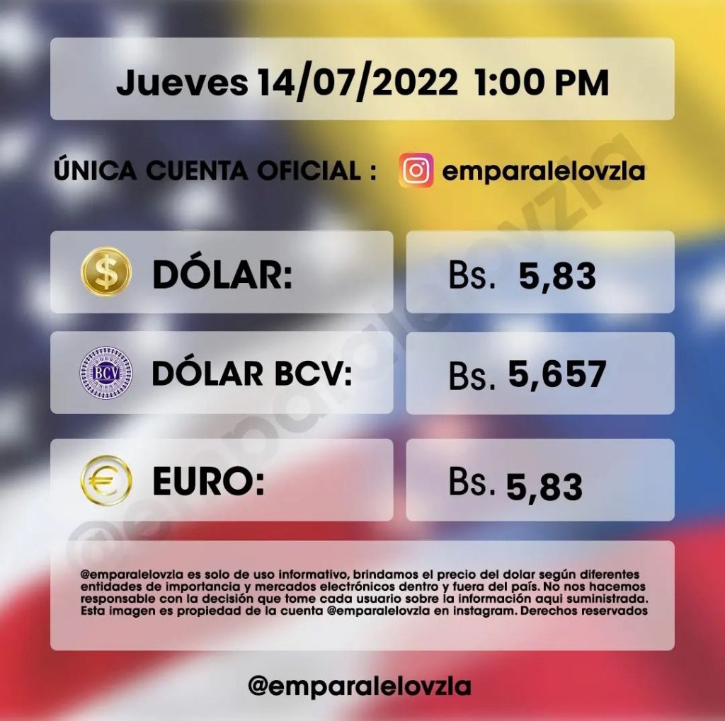 Dólar no oficial cerró en Bs 5,83 este #14Jul