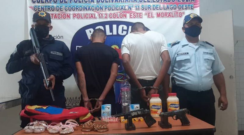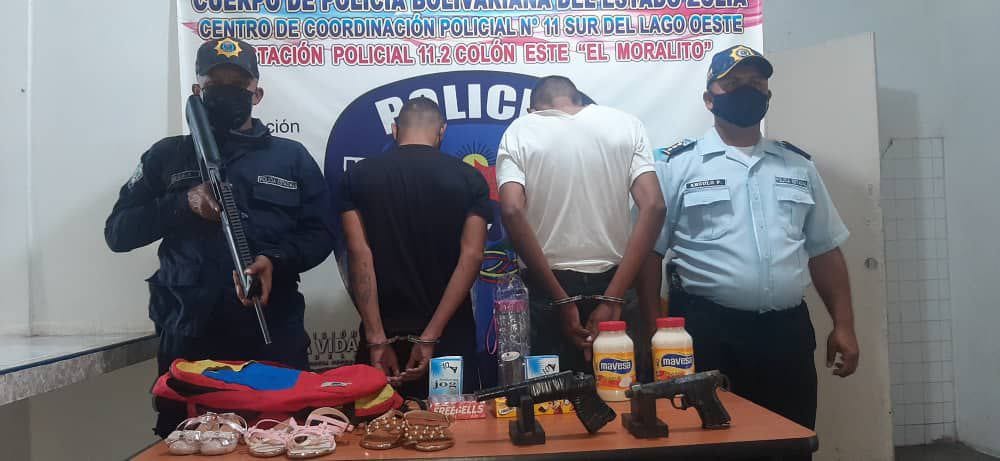 Una comisión del Centro de Coordinación Policial Sur del Lago Oeste, capturó a Leudys José Vera Soto de 20 años de edad y Elis Iván Briceño Peña de 50 años de edad, denunciado por una comerciante del casco central de El Moralito, municipio Colón, de ingresar a su tienda y sustraer calzados, ropa interior, salsas para aderezar alimentos, golosinas entre otros productos, según lo indicó el C/J Sergio Villasmil Rondón director general del Cuerpo de Policía del estado Zulia (Cpez).
