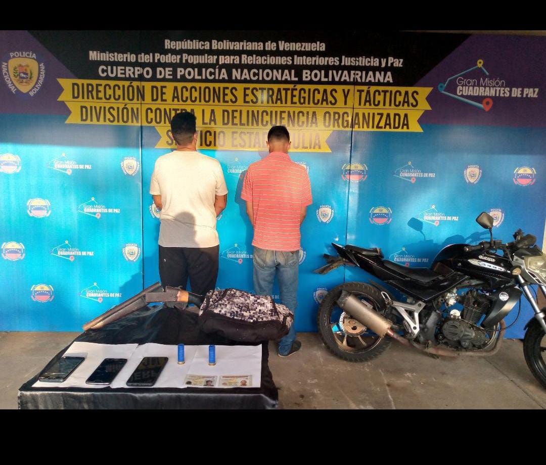 Funcionarios de la División Contra la Delincuencia Organizada del estado de la Policía Nacional Bolivariana Zulia capturan a dos sujetos por porte ilícito de armas de fuego