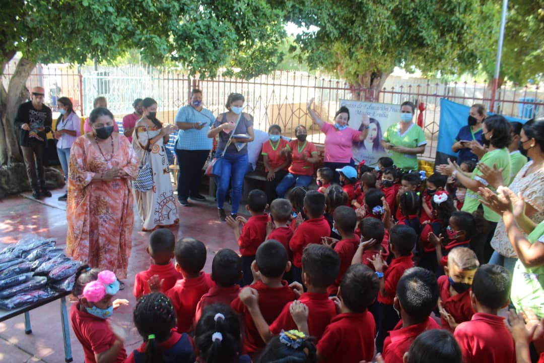 En nombre del presidente Nicolás Maduro Moros y de la Ministra del Poder Popular para la Educación Yelitze Santaella, la Dra. Dorelis Echeto junto al concejal José Sierra entregó uniformes, zapatos y útiles escolares a los 178 alumnos de la institución educativa.