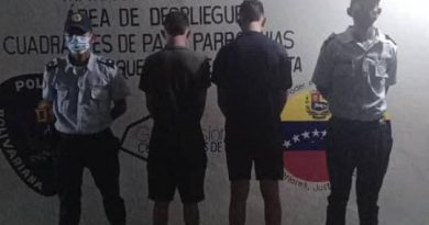 “FANB detiene a siete sujetos incautos con 26 panelas de droga, captados por grupos tancol para ser mulas de su micro tráfico, sin embargo, serán sancionados severamente con todo el peso de la ley por narcotraficantes”, escribió Hernández Lárez en su cuenta de Twitter, sin precisar los kilos de estupefacientes decomisados.