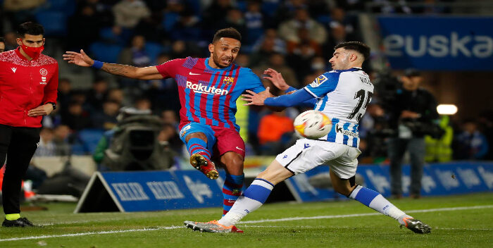 Dembélé había avisado con un disparo al palo que celebraban casi como un gol los pocos aficionados culés que se acercaron a San Sebastián, pero en la siguiente acción no perdonaría el Barcelona y un medido centro de Ferrán lo rubricó Aubameyang con un cabezazo desde las alturas anticipándose a la marca de Zubeldia.