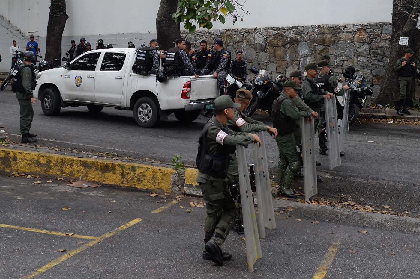 Por seguridad, la medicatura forense de Caracas, aún está bajo resguardo. Alrededor de las 11:00 de la mañana se contabilizaron aproximadamente 30 funcionarios en moto, en ambos extremos de la morgue.