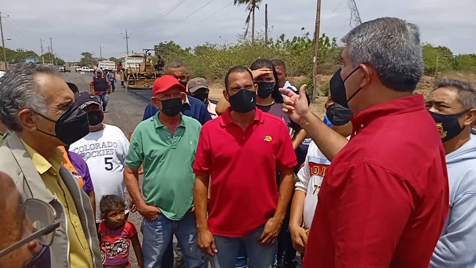 Con alegría, el sector transporte y habitantes de la comunidad Las Mandocas, de la parroquia Ricaurte, celebraron este jueves 7 de abril el inicio de los trabajos del Plan de Asfaltado en la Troncal del Caribe, importante arteria vial que comunica a más de 2 municipios de la subregión Guajira y Colombia.