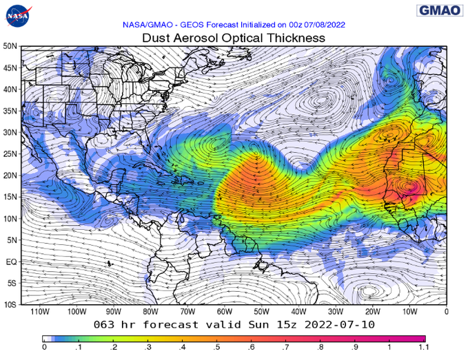 Una importante concentración de polvo del Sahara se desplaza por el océano Atlántico y llegará a territorio venezolano a partir del próximo domingo 10 de julio.