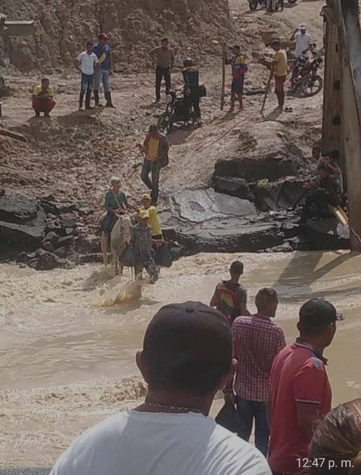 Hoy se cumple una semana que una crecida del río Onia por las fuertes lluvias que han caído en la zona, se llevó el paso provisional hecho por la alcaldía junto con los tubos que instalaron, perdiéndose el paso de vehículos livianos. Desde esa fecha, solo hay paso por el puente caído, pero, en vista a la crecida del rio los transeúntes deben pasarlo agarrándose con una cuerda para que el río no se los lleve y mojándose hasta las piernas”, explicó Mancilla.”También pobladores prestan servicio con lanchas para atravesar el río”, acotó la fuente.