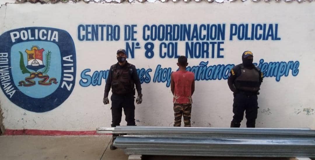 Uniformados del Cuerpo de Policía Bolivariana del estado Zulia (Cpbez) adscritos al Centro de Coordinación Policial Col Norte, en horas de la tarde de este miércoles capturaron a Alcides Ramón Civira Reyes de 40 años de edad por hurto de material estratégico perteneciente a la Empresa del Estado Los Cabimos, ubicada en el municipio Cabimas, según información aportada por el director del Cpbez, comisionado jefe Sergio Villasmil.
