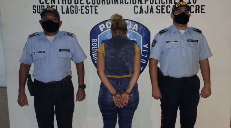 El procedimiento lo realizaron funcionarios del Cuerpo de Policía Bolivariana del estado Zulia, Cpbez Nó 10 con sede en Caja Seca al dirigirse hacia el Mercado Municipal donde la mujer de 25 años de edad tiene un local comercial para aprehenderla por el delito de maltrato agudo infantil en contra de su propio hijo.