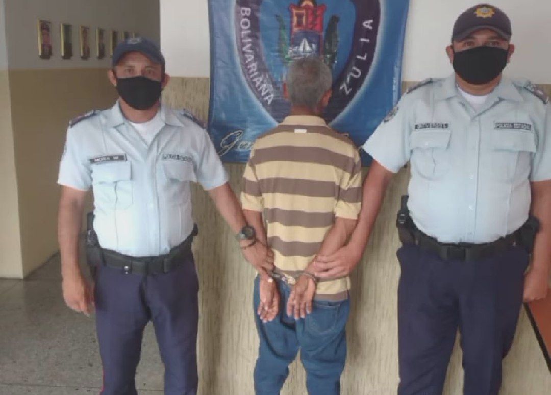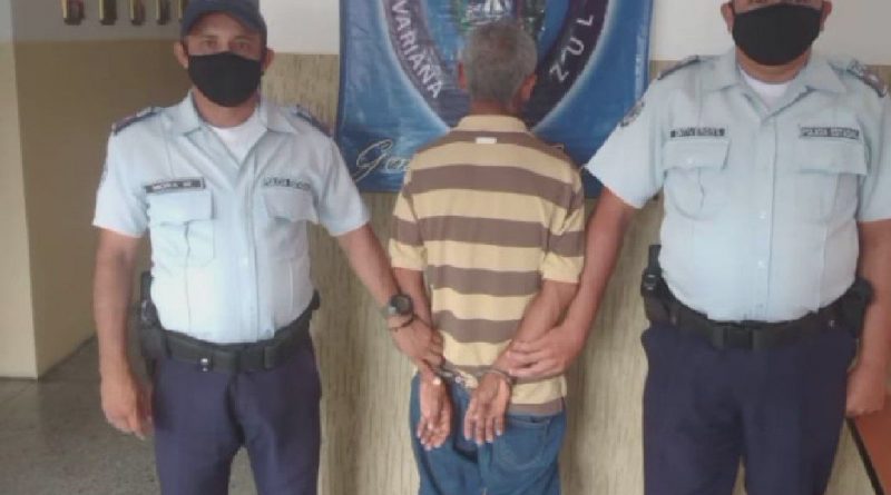 En la vía principal de la población de Cuatro Esquina, parroquia Carlos Quevedo del municipio Francisco Javier Pulgar funcionarios del Cuerpo de Policía Bolivariana del Estado Zulia (CPBEZ), pertenecientes al Centro de Coordinación Policial N° 10 Sur del Lago Este, adscritos a la Estación Policial 10.2 detuvieron a Silvio Celestino Navarro, de 51 años de edad por el delito de violencia de género.
