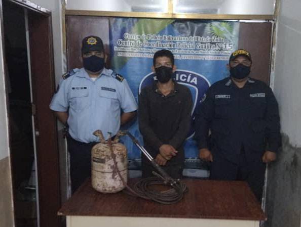 En horas de la noche de este martes durante labores de patrullaje en zonas rurales del sector Fuerte Mara, parroquia Las Parcelas, municipio Mara, patrulleros adscritos al Centro de la Coordinación Policial Eje Mara -Padilla del Cuerpo de Policía Bolivariana del estado Zulia (Cpbez), capturaron en flagrancia a Lisandro Jesús González Boscán de 28 años de edad, cuando cortaba tuberías propiedad de Pdvsa Gas con un equipo para aplicaciones industriales