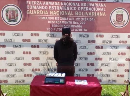 La ciudadana, de 37 años de edad, fue capturada en el sector La Uva de La Azulita, en el municipio Andrés Bello de la entidad, cuando los efectivos castrenses estaban cumpliendo con los lineamientos del general de división (GNB) Juan Ernesto Sulbarán Quintero, comandante de la Zona Operativa de Defensa Integral (ZODI) Mérida; y del general de brigada (GNB) Hernán Dionisio Rincón Paz, comandante de la GNB en Mérida.