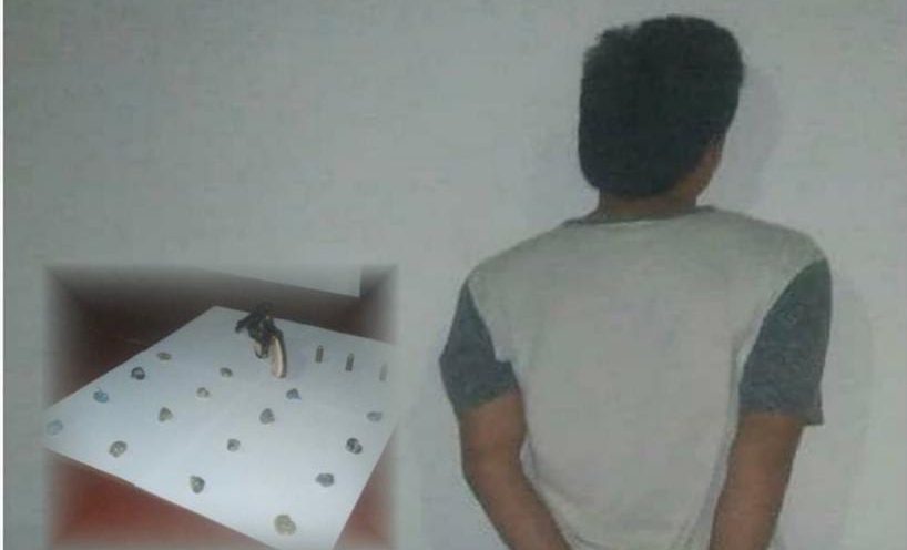 Según la minuta policial al detenido, le hallaron el sábado en la noche, 16 microenvoltorios de presunta marihuana tipo Crispy con un peso de 20 gramos y un revólver plateado con serial visible, calibre 38 mm con 3 proyectiles sin percutir.