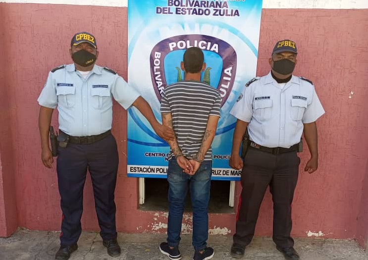 Durante un patrullaje a pie por la parroquia Ricaurte municipio Mara, oficiales del Cuerpo de Policía Bolivariana del estado Zulia (Cpbez), adscritos a la Estación Policial Santa Cruz, del Centro de Coordinación Policial Eje Mara-Padilla, capturaron a Diego Alejandro Nava Esis de 32 años de edad en cuyo poder se encontraron restos vegetales de presunta marihuana.