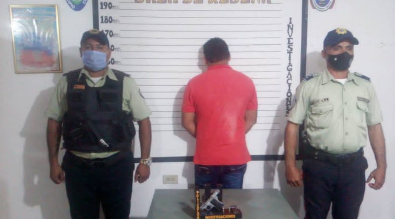 El sujeto de 27 años de edad, portaba una pistola marca Pietro Beretta, con serial visible que tenía dos municiones cuando se encontraba en la calle 4 del sector San Carlos de la parroquia San Carlos del municipio Colón del estado Zulia.