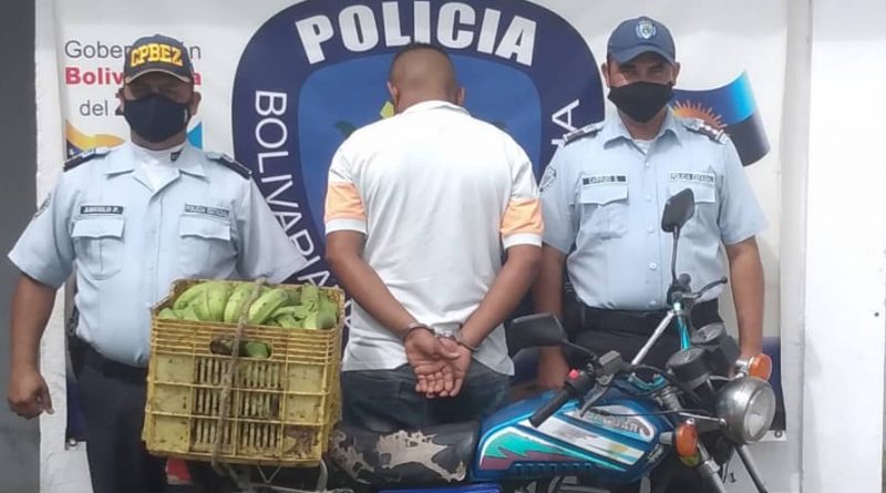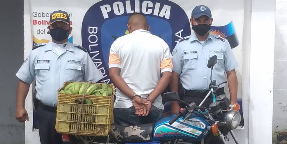 La aprehensión la realizaron el pasado miércoles en horas de la tarde, en el sector Santa María, vía que conduce a Puerto Concha en la finca La Candelaria, parroquia Urribarrí del municipio Colón, donde le retuvieron la moto en la que andaba, marca Jaguar, de color azul del 2008 donde llevaba los plátanos.