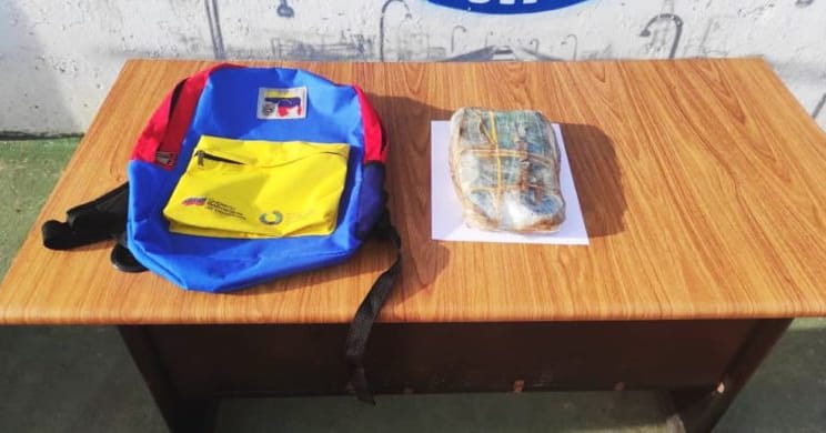 Al momento de realizar la inspección a un bolso tricolor propiedad del sindicado, se incautó un paquete de material sintético contentivo en su interior de restos vegetales de presunta droga (marihuana) con un peso aproximado de 585 gramos. Procediendo a la detención del mismo, siendo trasladado al centro de coordinación policial para ser puesto a la orden del Ministerio Público.