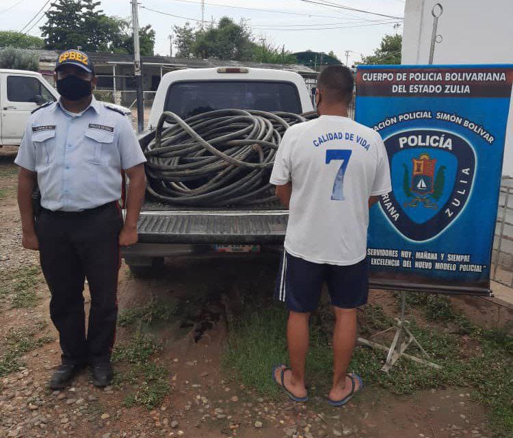 Como Julio César Rincón de 47 años quedó identificado un sujeto detenido por oficiales del Cuerpo de Policía Bolivariana del estado Zulia (Cpbez) por el delito de hurto de material estratégico perteneciente a Cantv, hecho suscitado en el municipio Simón Bolívar, según información confirmada por el Comisionado Jefe Sergio Villasmil director general del Cpbez.