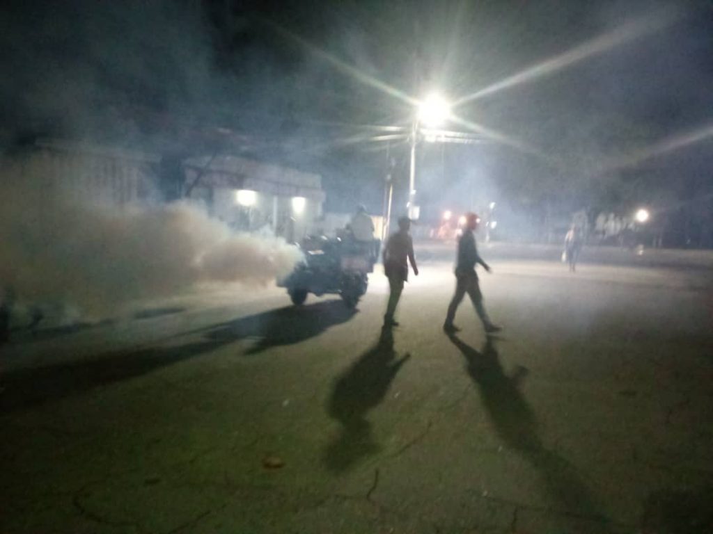 Como parte de las medidas implementadas por la gestión municipal en Sucre (Zulia) el alcalde de esta entidad Yonys González junto a Salud Ambiental, el Cuerpo de Bomberos de Sucre, y Protección Civil, en horas de la noche del pasado lunes y martes realizaron una jornada de Nebulización Especial en los sectores donde según indicó el burgomaestre se han presentado algunos focos; en este sentido explicó “Está actividad se está realizando en horas de la noche porque es precisamente la hora donde salen los vectores y es justamente el mejor momento para atacarlos(…) Esta vez se realizaron las labores en la parroquia El Batey, en los sectores Las Casitas de Teja, Santa María, Las Cuarenta, y El Tráfico, Verdún , Calle Los novios, donde se nebulizaron un aproximado de 1.000 viviendas, en este sentido también se realizó un censo por parte de los Bomberos así como también una muestra rápida de Paludismo” destacó González.