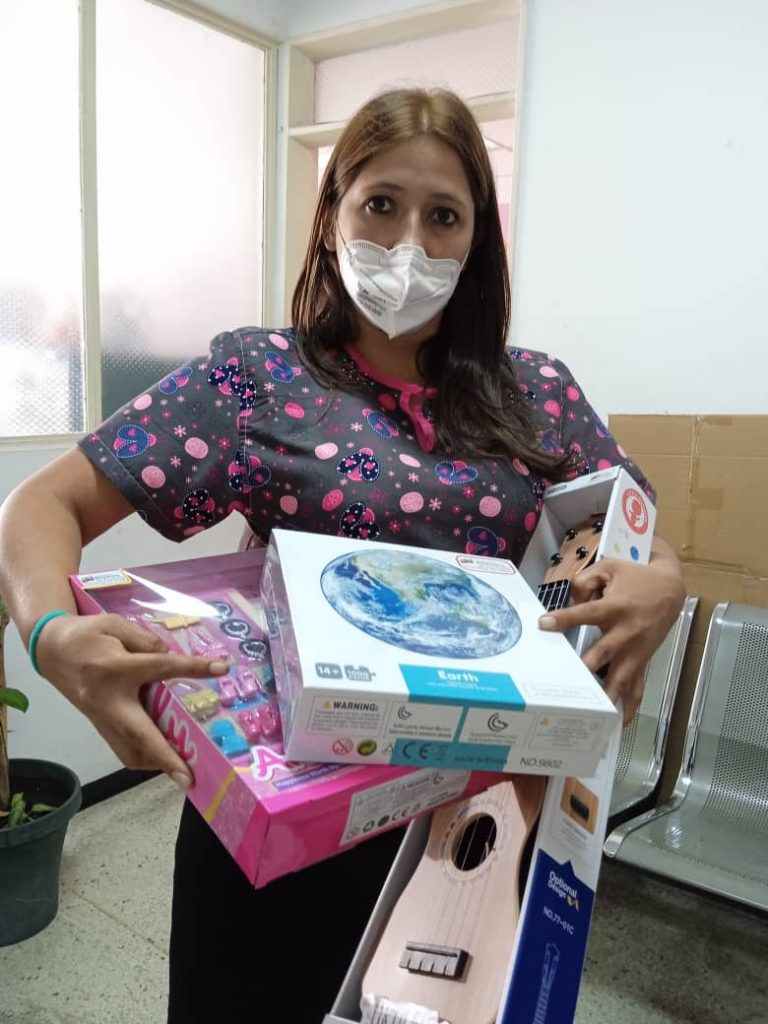 Por su parte Marisela Zambrano, trabajadora del área de emergencia expresó su agradecimiento al recibir juguetes para 3 de sus 4 hijos, que les traerán una gran alegría, la noche de Navidad.