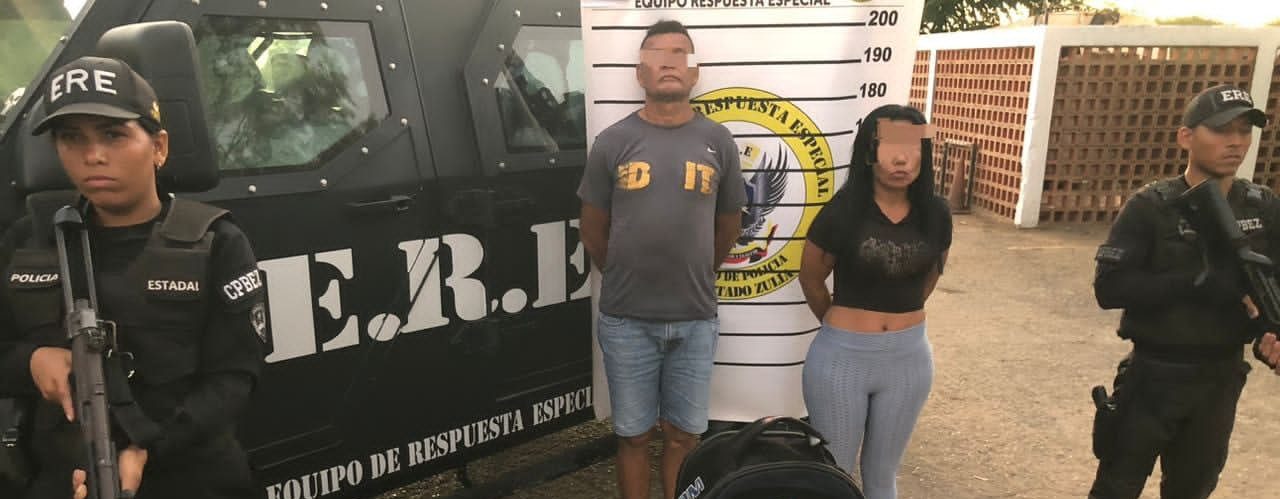 Una comisión del Equipo de Respuesta Especial (ERE) del Cuerpo de Policía del estado Zulia (Cpez), durante un recorrido preventivo e investigativo en el barrio Villa Hermosa, sector Los Haticos, parroquia Cristo de Aranza del municipio Maracaibo, logró la captura de una pareja, encargada de la logística del Grupo Estructurado de Delincuencia Organizada (GEDO) del “Conas” con un arsenal de proyectiles, drogas y un artefacto explosivo, información suministrada por el C/J Sergio Villasmil Rondón.