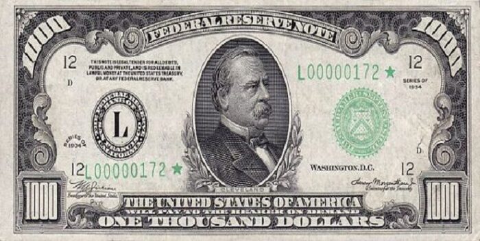 Aunque suene increíble, sí existe. El gobierno estadounidense emitió billetes de 1000 dólares entre 1862 y 1946.