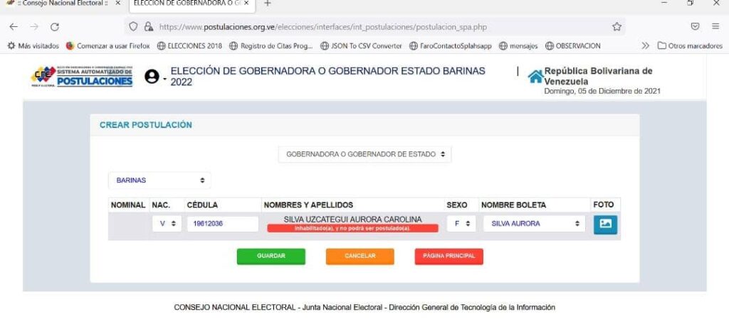 La noche de este domingo se dio a conocer extraoficialmente que el Consejo Nacional Electoral (CNE) habría inhabilitado a la candidata de la oposición a la gobernación del estado Barinas, Aurora de Superlano.