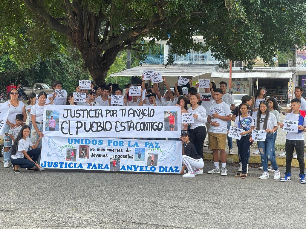 Familiares y amigos de Anyelo Díaz (17) joven asesinado el pasado domingo Día de las Madres en la mañana de este sábado, protestaron pacíficamente exigiendo justicia al frente de la Fiscalía del Ministerio Público en Caja Seca.