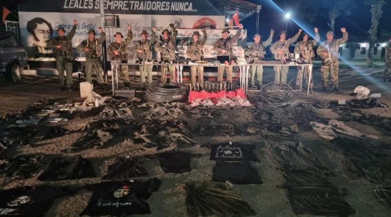La FANB gasolina de avión, material de intendencia, explosivos y armas, según la información suministrada por el General en Jefe, la cual fue acompañada de imágenes y videos que comprueban la presencia de los materiales y suministros.