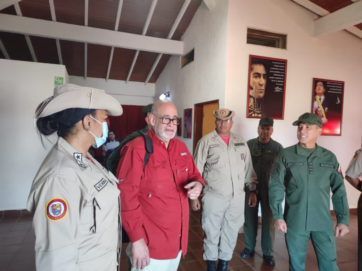 Según información que compartió a través de su usuario en la red social Twitter, a su llegada compartió con funcionarios de la Fuerza Armada Nacional Bolivariana, miembros de la Zona de Desarrollo Integral Zulia; entre ellos el Mayor General Renier Urbaez, comandante de la Región Estratégica de Defensa Integral Occidente.
