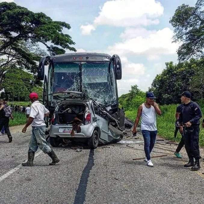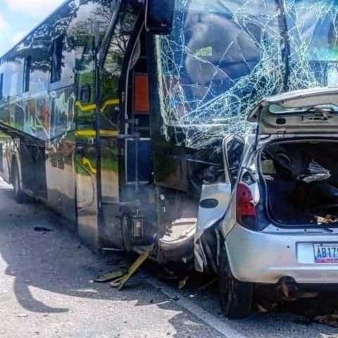 El choque de frente en la Morón-Coro entre un Chery Arauca plateado, placas AB1779SO y un Expreso de la Dirección Ejecutiva de Seguridad Integral (DSI) adscrita a Pdvsa, dejó dos muertos y cinco lesionados según reportes preliminares.