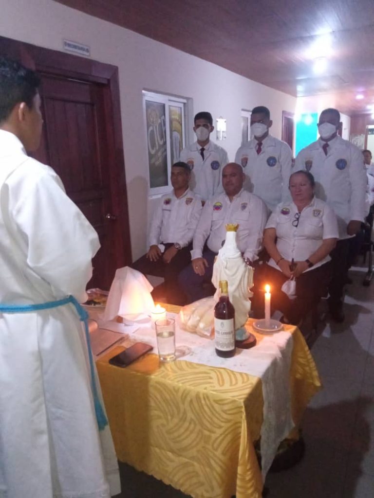 Dentro de las instalaciones de la delegación del Cuerpo de la Policía Científica en Caja Seca, los funcionarios celebraron a primera hora de la mañana una eucarística ofrecida por el párroco de la iglesia católica La Inmaculada, Maikol Peña, quien procedió a dar lectura del santo evangelio y conversar sobre la santa palabra de Dios a los presentes.